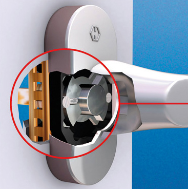 Ein Kupplungselement zwischen Griff und Vierkantstift wirkt dabei als „mechanische Diode“.