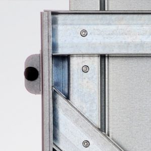 Die vorgefertigten Wandelemente und Türen werden zwischen den Stützen montiert und können vor Ort den Räumlichkeiten angepasst werden. Die Türen sind grundsätzlich mit aushängesicheren Bändern ausgestattet und können wahlweise nach innen oder außen öffnend in das Trennwandsystem oder in vorhandenes Mauerwerk eingebaut werden.
