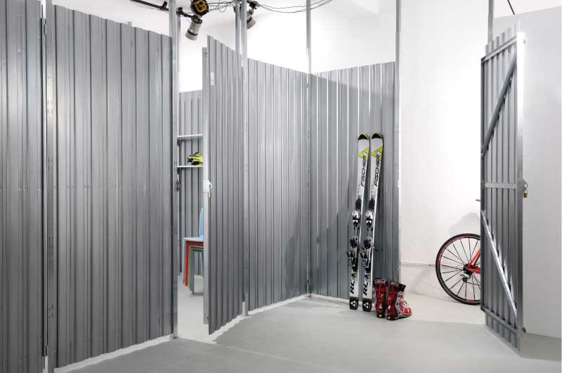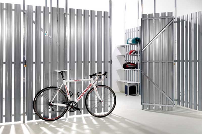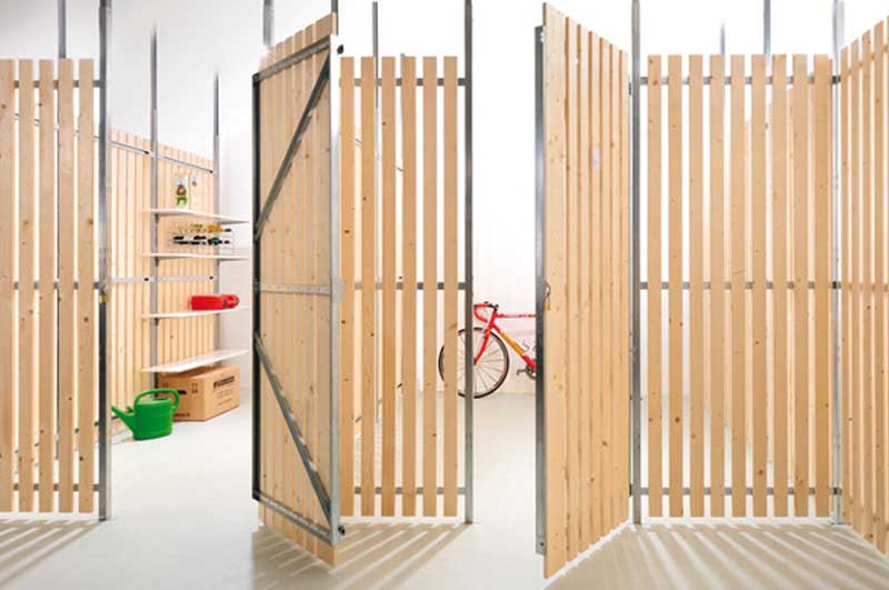 Das Trennwand-System UTS® Typ S hat sich als äußerst stabile und preisgünstige Lösung bereits in vielen Bauten im In- und Ausland bewährt. Das transparente Stahllamellen-System vermittelt einen technischen und robusten Gesamteindruck. Die 119 mm breiten Lamellen werden durch ein zuverlässiges, bereits in der Automobilindustrie bewährtes Stanznietverfahren im Abstand von 33 mm mit den Tragprofilen zum Wand- oder Türelement verbunden. Dieser Abstand gewährleistet die optimale Durchlüftung Ihrer Abstellräume.